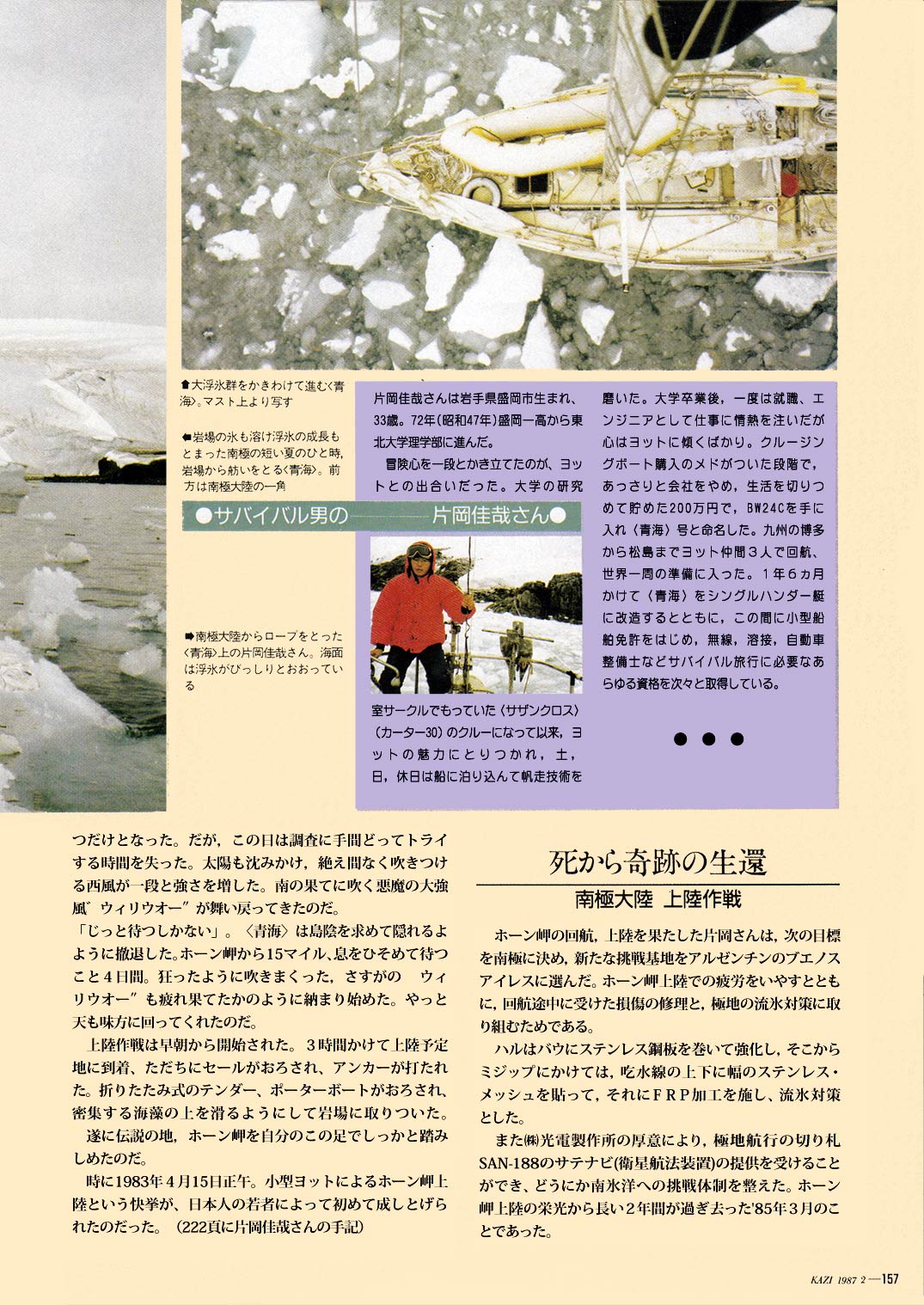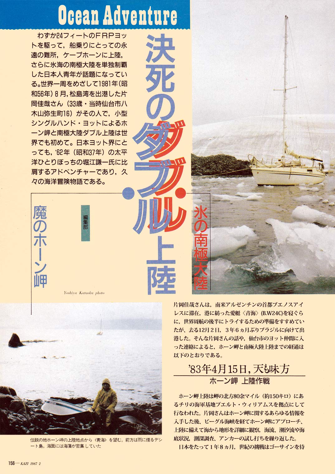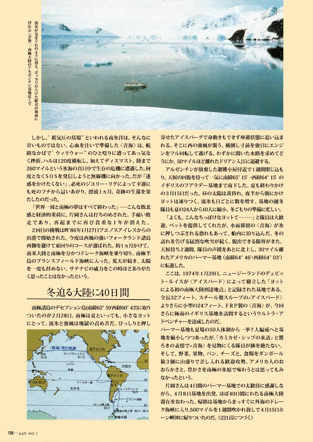 1987年2月、<青海>が帰国する3年以上も前、ブラジル沿岸を航海中に掲載された、舵誌の記事です。