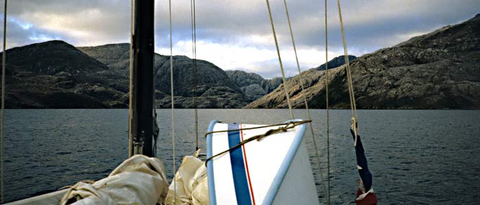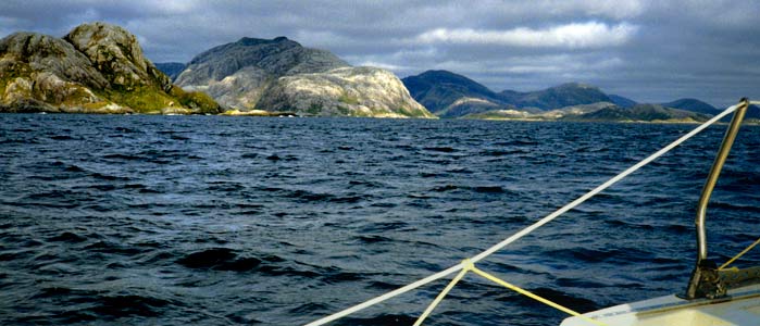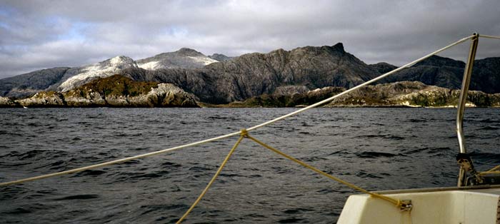 上の写真が、今夜の泊地Seno Ocasionの入口です。前方の山々の間から進入していきます。
