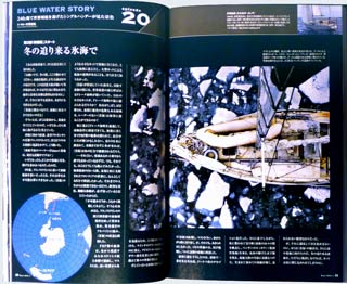 「南極へ向かう直前、南米 大陸最南端のビーグル海峡で「ヨシ・カタオカ」と名乗る日本人の一人乗りヨット「アオミ号」に出会った。 「カタオカは、今アルゼンチン、チリを回っているが、今年暮れには南極に向かう、といっていた。でも、一人ではかなり危険だ。氷山の監視が十分できないからね」とアルグーさんは心配顔だった。