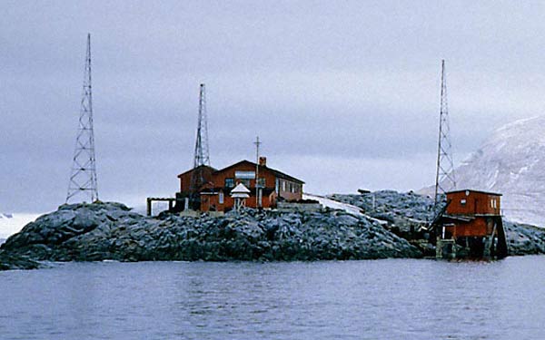 南極の火山島デセプション島を発った<青海>は3日目になって、やっとの思いでメルキョー群島に着きますが、そこには基地があったのです。1947年にアルゼンチンが建設した「Melchior」基地です。