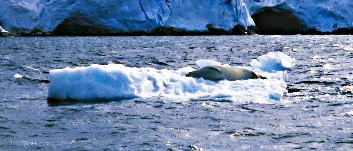 上の写真は、南極で最もポピュラーと言われるカニ食いアザラシ(Crabeater seal)です。長さと体重は、それぞれ最大2.5mと225kg。顔は犬のように鼻の部分が突き出しており、体の色はシルバーグレーやクリーミーホワイト(季節によって違うのかもしれませんが、私が見たのはもっと黒っぽかったです)。前足を広げて、氷の上を泳ぐように素早く移動するそうです。