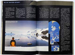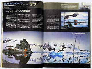 その完璧な静寂を破り、ときおりペンギンの声が響く。湾の中央に泊めた<青海>から、岸を双眼鏡で眺めると、無数の白い腹が日を浴びて、岩場の上に並んでいた。近くの水中に目を落とすと、陸ではヨチヨチ歩きの彼等が、飛行機のように両翼を広げ、魚を追って水中を高速で飛んでいる。