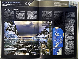 「よし、戻るぞ」かけ声とともに大きく舵をきり、船首を180度回転させる。と同時に、水道の左右にそびえて並ぶ急峻な山々の輪郭が、水晶のように透明な空気を通し、両眼を痛いほど強く刺激した。頂上の険しい黒岩、斜面の微細な突起や凹凸、麓に崩れた青白い氷の質感まで、手に取るようにクリアーだ。山々の細密画を映した巨大スクリーンが、目の前に張られているようだ。